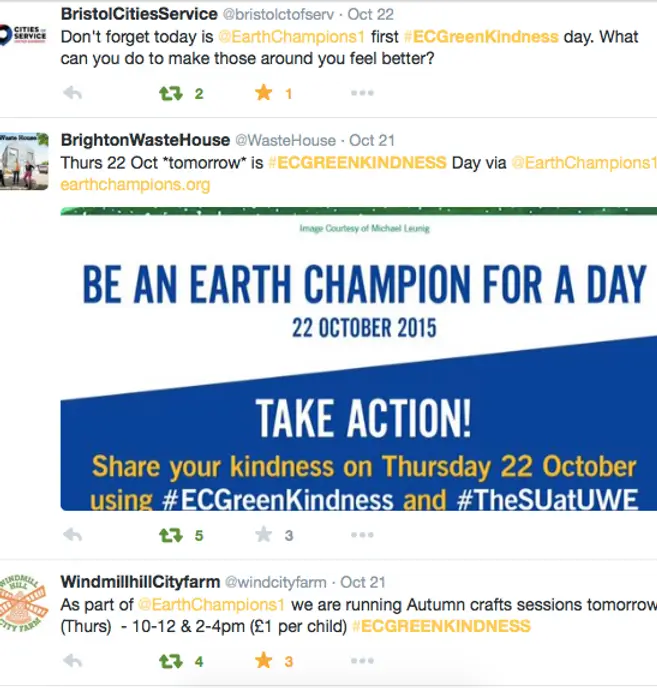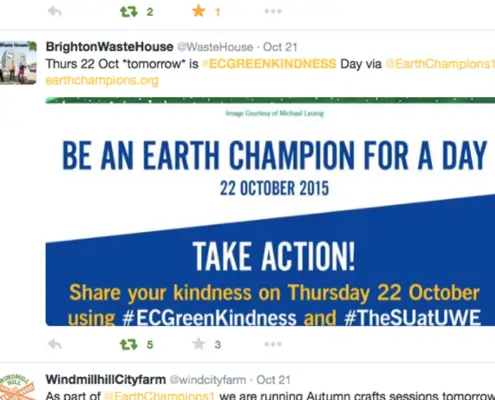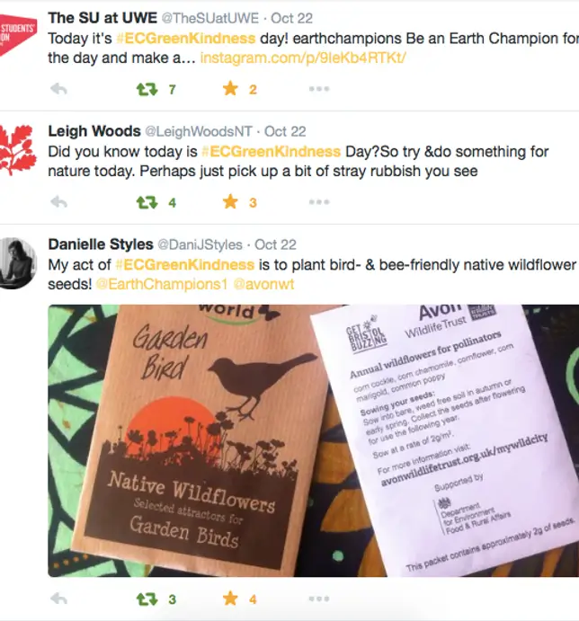 We asked people to Tweet, Instagram, email and/ or Facebook what they did with words, pictures or videos using the hashtag #ECGreenKindness … Here are some of our results!